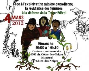 L’événement du 4 mars pour la Journée internationale des femmes mettra l'accent sur leurs expériences. Nous entendrons des délégations tout juste de retour des Philippines et de la Colombie, où elles ont été des témoins de première main de l'impact de l'exploitation minière dans ces pays. Des femmes des communautés autochtones d’ici viendront également témoigner et nous partagerons différentes expériences de luttes. Un atelier de chorale et d'autres activités culturelles seront également au programme, avec bien sûr, un bon repas à partager.