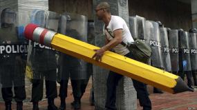 The students number about 550,000 students at 42 public universities scattered around the country in cities including Bogotá, Medellín, Cali, Barranquilla, Cartagena, Pereira, Bucaramanga, Cúcuta, Tunja, Popayán and Pasto. Their strike is against Law 30, which is billed as educational reform. It is in fact part of the international corporate educational reform movement aimed at privatising public education. Law 30 would take the first steps by redefining education as a service rather than as a right. Currently, Colombia’s constitution defines education as a right and Colombian law permits only two types of universities: public and non-profit.