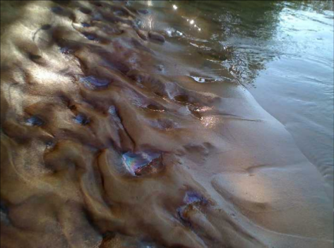 Encore selon les critères du MDDELCC, les huiles et produits pétrochimiques ne doivent pas être présents en concentration pouvant être détectées par un film visible faisant écran à la surface.