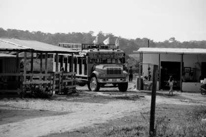 During the journey, the landscape appears to be a mixture of extensive cattle farming and mining operations. In the area of the river that flows parallel to the road, numerous backhoes can be seen dredging the riverbed in search of gold, a practice that is extremely harmful to the environment. After several hours of driving, we pass the ELN-controlled area, which can be seen from the ELN's graffiti. Finally, we arrived at Rancho Quemado, where for two days we received testimonies of the state's abandonment of both the displaced people of Arenales and the residents of this village. The testimonies refer to the lack of guarantees for life in a region where the state is conspicuous by its absence, the villagers are responsible for building infrastructure such as roads and schools, there are no medical services or emergency care, and the lack of water is another serious problem. But the most pressing problem at the moment is the security problem arising from the internal conflict. In addition to the risks of the recent fighting, the paramilitaries have subjected this area to an intense blockade: "We are threatened, they tell us that we have to stop our economic activity from which we live. If we can't carry out artisanal mining or our daily activities, what are we going to live on? Since a month and a half ago, when the AGC blocked the passage of fuel to the Northeast region, the entire economy of the region has been damaged, preventing the normal development of mining, commercial or agricultural activities. The AGC blockade began with their entry from the urban centre of Segovia and also through the alternative road of Puerto López.