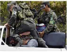 Il y a également de très nombreuses dénonciations émanant des habitants de ce département qui font état des agressions subies par les paysans de la part d’hommes en uniforme de l’ESMAD avec des armes à feu et des armes blanches, des bâtons et des matraques électriques ; ils auraient fait irruption aussi à des moments où les paysans étaient sans défense et en dehors  des manifestations, détruisant leurs stocks alimentaires, les menaçant de mort et leur assénant des coups brutaux. Ils ont aussi fait usage d’hélicoptères pour asperger de gaz lacrymogènes manifestants et non manifestants sans discrimination.