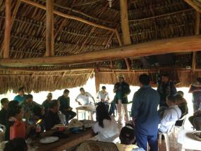 The day started with a board meeting of the national board of USO, then USO members and their accompaniers proceeded to visit different locations within Campo Rubiales with the intention of spreading the message to the workers that the USO was back and was going to fight for better working conditions, stable contracts, and for Eco Petrol to not renew Pacific Rubiales’ contract in 2016. When the group reached their first destination in Campo Rubiales where hundreds of workers usually eat lunch, they found the place empty of workers and instead occupied by ESMAD (S.W.A.T.) police forces. They then went to a different cafeteria and found the doors blocked by police and private security force, who refused to allow USO members to enter. After a slight scuffle between both sides, the USO succeeded in entering the cafeteria and distributed fliers, gave speeches about the importance of worker power and solidarity, and informed the workers that the USO was coming back. The USO ended the powerful day with the installation of the new office of the USO in Campo Rubiales.