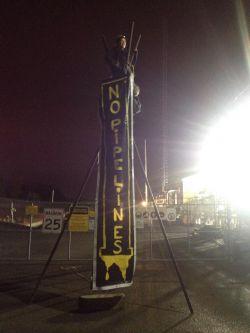 In a release issued this morning, the demonstrators explained that their action is to counter the reversal of Enbridge's Line 9B oil pipeline. The reversal in the pipeline's flow will bring bitumen from the Alberta tar sands east, through including through Montreal, for eventual export.