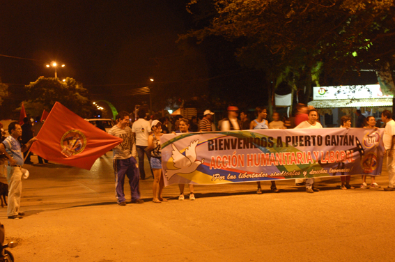 | Puerto Gaitán, le 10 octobre 2011. Arrivée dans la nuit de la marche pour les libertés syndicales. Photo : Sara G. Mendeza |