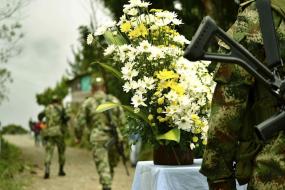 Les militaires viennent aujourd’hui demander pardon aux familles. Décision de la juge. “Ils le font à contrecœur, c’est une humiliation pour eux”, soutient Luz Marina. L’acte, qui devait d’ailleurs se réaliser trois semaines auparavant, avait été annulé car les « conditions de sécurité n’étaient pas garanties ». Face à l’indignation des familles, la cérémonie a finalement lieu.     Venues de tous les villages voisins, plus de deux cents personnes attendent sur le terrain de foot de Belén. Le hameau où ont été assassinés Hortensia et Manuel. Les militaires préparent une petite salle pour la cérémonie : une trentaine de tabourets en ligne, drapeau colombien et drapeau militaire, fleurs en évidence.   Luz Marina, sidérée par ce protocole, harangue le colonel Fernando López Colmenares : “j’exige que la cérémonie se réalise à l’endroit où vous et vos soldats avez exécuté ma fille, colonel. Et pas dans cette salle avec votre drapeau. Vous leur avez tiré dans le dos, là-bas, à la sortie du village, colonel.” Le militaire, sermonné tel un écolier, acquiesce froidement.   Vous êtes les premiers à obtenir des excuses de l’armée”   Pendant la messe, le père Alberto, de la Commission Justice et Paix, rappelle l’importance de cette cérémonie : “vous êtes les premiers en Colombie à obtenir des excuses de l’armée pour des exécutions extrajudiciaires.” Discrets et tête baissée, les militaires n’apprécient guère cette exclusivité.