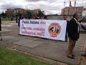 Aujourd'hui, jeudi 30 mai, des militantes du Réseau de solidarité contre l'injustice minière sont entrées dans la salle Kensington de l'hôtel King Edward à Toronto, où se tenait l'assemblée annuelle des actionnaires de Pacific Rubiales, en distribuant des copies du communiqué de presse du Syndicat pétrolier de l’USO et en annonçant le dépôt d'une poursuite judiciaire pour violations du droit d'association.